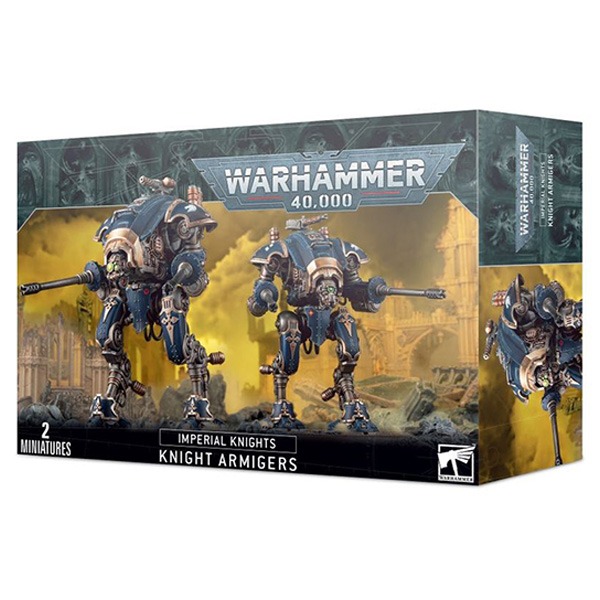– Armiger Warglaive, armed with thermal spear, reaper chain-cleaver, and either a Questoris heavy stubber or meltagun